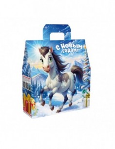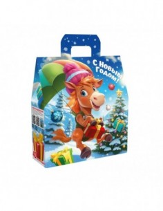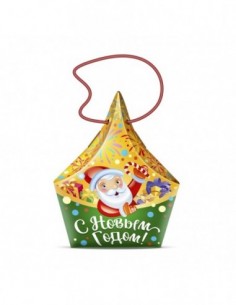 Вес: 600 г, размер: 12*12*18 смСостав: конфеты в ассортименте, карамель на палочке, печенье/вафли или пирожок/батончик, батончик, жев.конфета, сок, яйцо/фигурка сюрприз