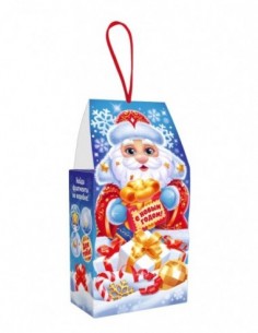Вес: 300 г, размер: 11*6*13 смСостав: конфеты в ассортименте, карамель на палочке, вафли, сок, печенье или батончик