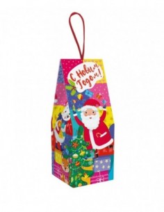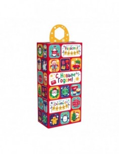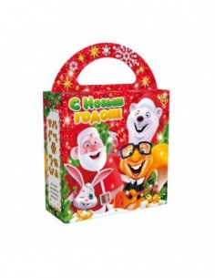 Вес: 600 г, размер: 11*7*23 смСостав: конфеты в ассортименте, карамель на палочке, печенье/вафли или пирожок/батончик, батончик, жев.конфета, сок, яйцо/фигурка сюрприз