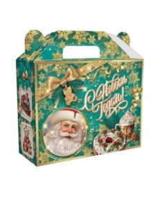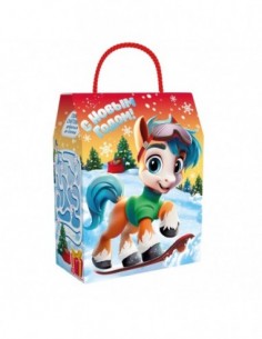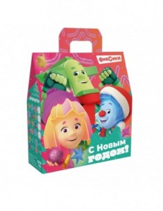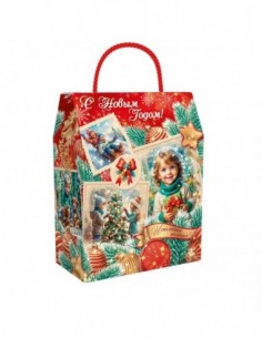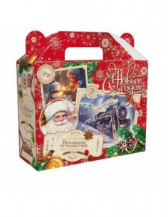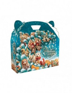 Вес: 700 г, размер: 17*7*25 смСостав: конфеты в ассортименте, карамель на палочке, печенье/вафли или пирожок/батончик, батончик, жев.конфета, сок, яйцо/фигурка сюрприз